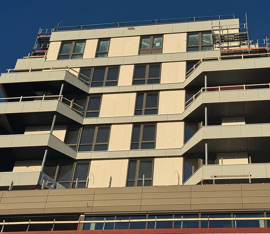 Vi bidro i utviklingen av Helgerudkvartalet med komplette fasadeløsninger og tekniske montasjer.